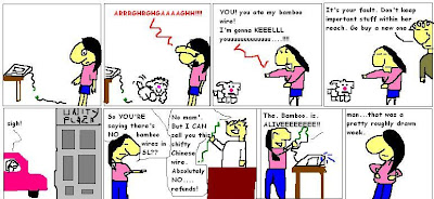He ate your bamboo wire? *facepalm* :OYou really should start drawing these comics in a vector graphics app man! :)